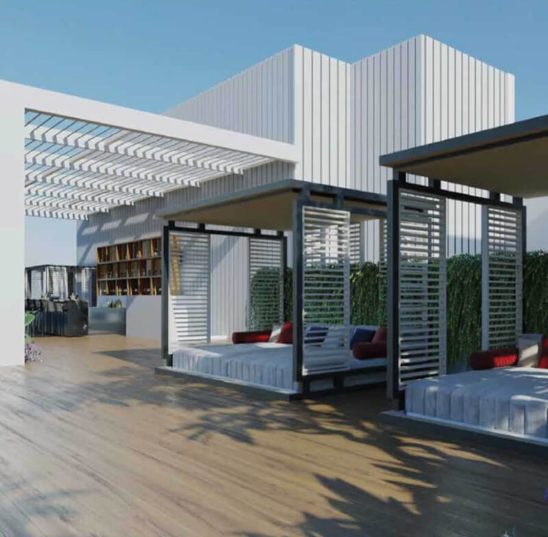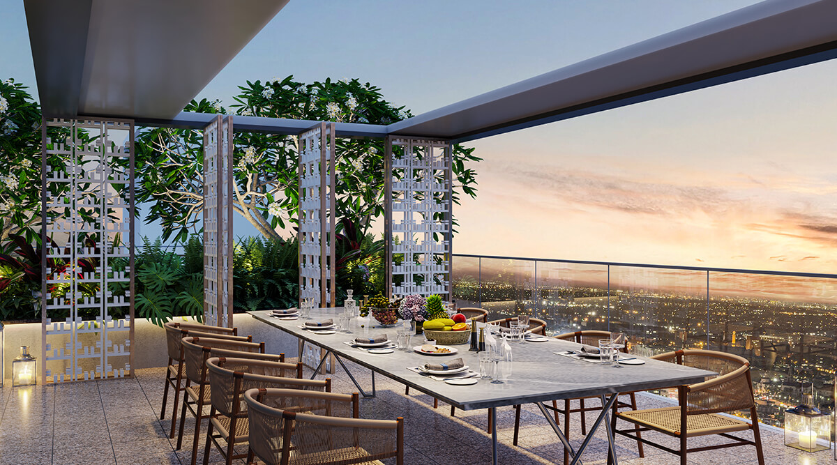 - Rooftop amenities with infinity pool, sky dining pavilion and sky bar
